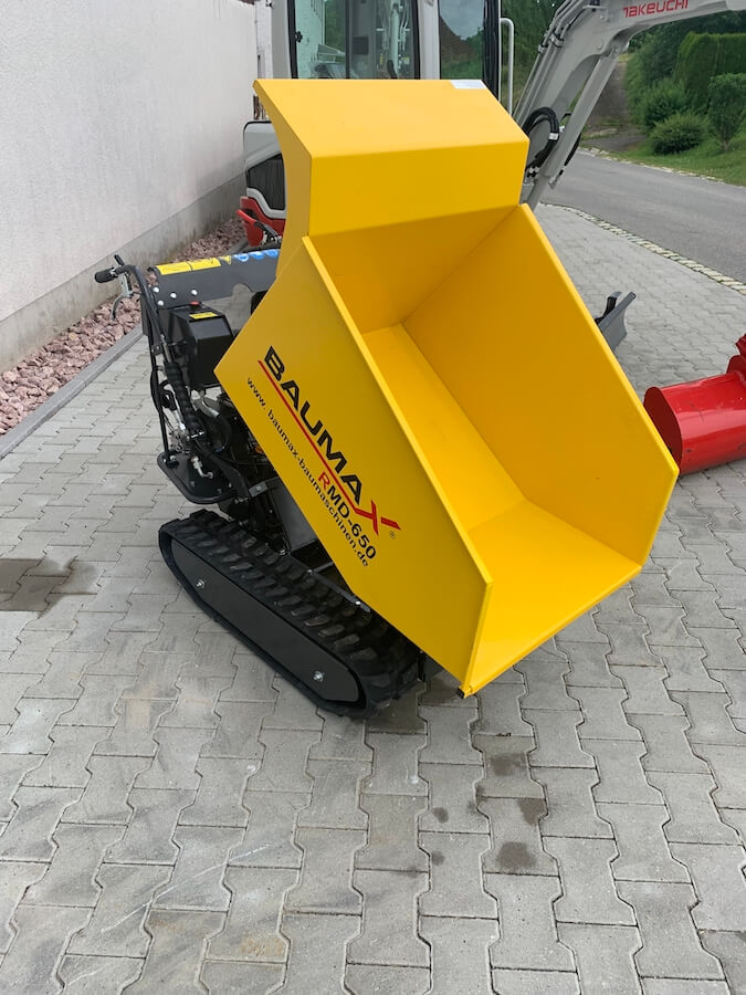 Für Erd- und Schüttguttransporte bei denen beengte Verhältnisse oder eine bodenschonende Transportaufgabe im Vordergrund stehen führen wir einen Raupendumper RMD 650 mit einer möglichen Zuladung von 650 kg. Auch in Kombination mit einem Minibagger kann hier z.B. der Aushub oder das Füllmaterial über schmale Wege transportiert werden.